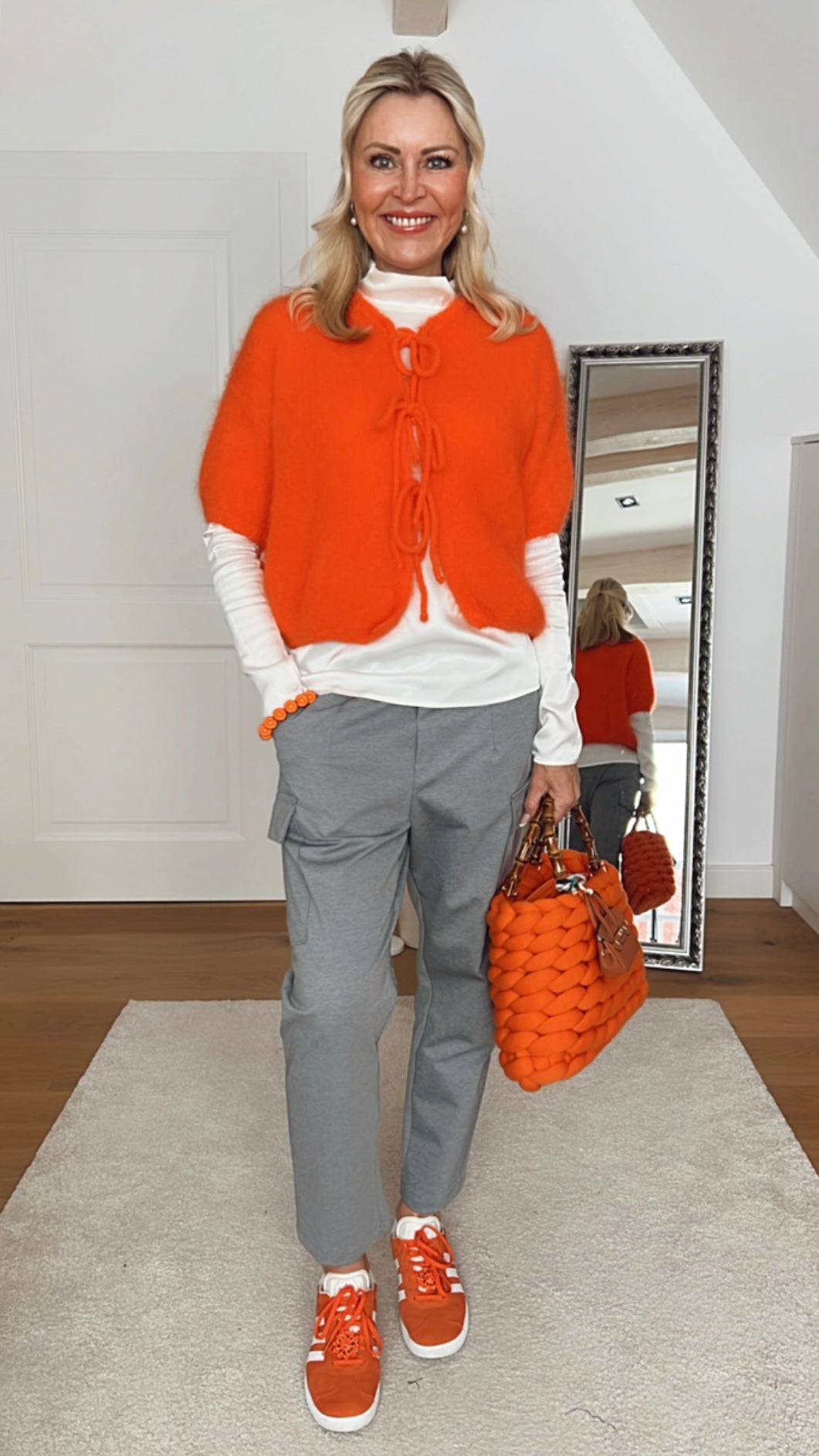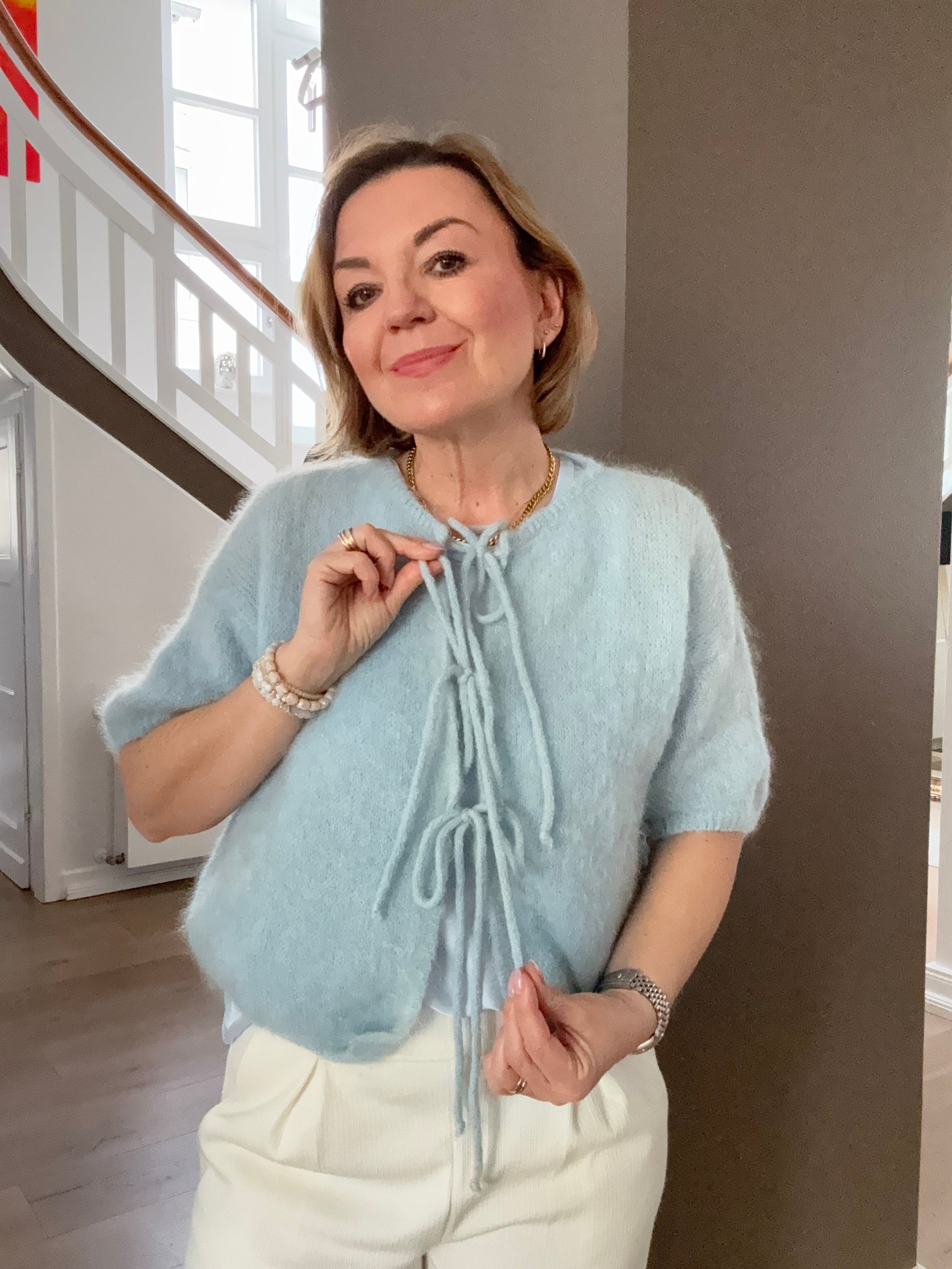 Perfekt kombinierbar mit Spitzenblusen, eleganten Röcken oder schlichten Stoffhosen. Besonders edel wirkt sie in Ton-in-Ton-Looks oder als sanfter Farbakzent zu neutralen Outfits.
